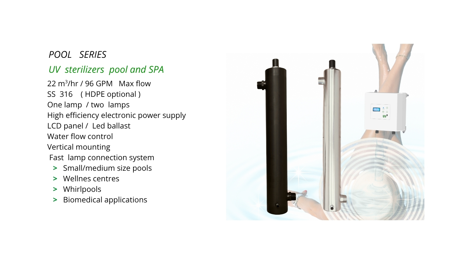 > L22 - POOL - SS AISI 316 sterilizer with UV³ control logic